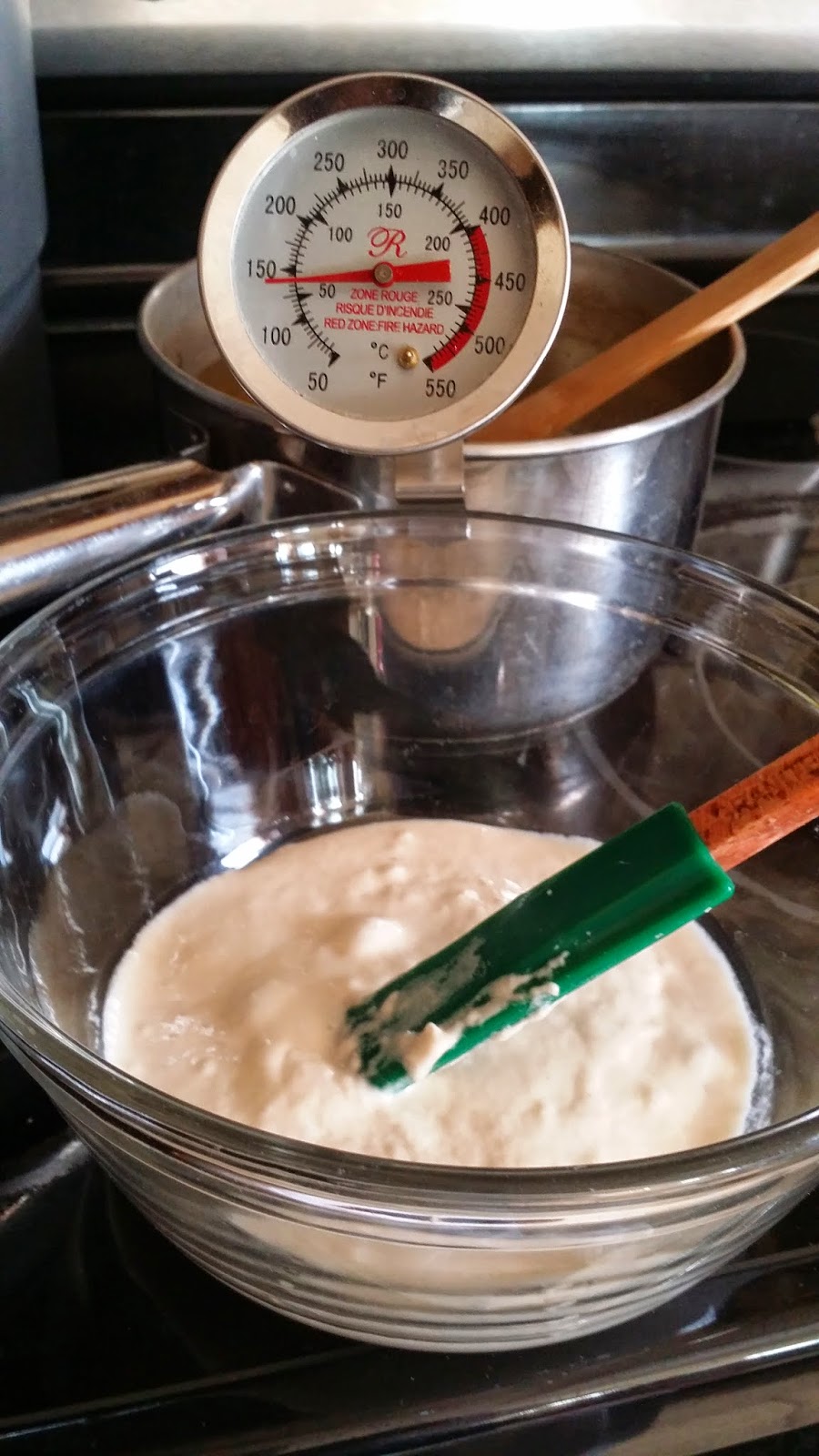 1. Mix 2 3/4 C of the flour and the salt in the bowl of a standing mixer fitted with a dough hook. Mix the milk, butter, and honey in separate bowl. Pour mixture into the 1/2 cup of natural yeast and mix until all the ingredients are well incorporated. Turn the machine on low and add the liquid. When the dough comes together, increase the speed to medium and mix for 5 minutes. If the dough is still sticking to the sides of the bowl, add the remaining flour, one 1/8 cup at a time until the dough no longer sticks (you might not use all of the flour – it all depends on the humidity level in your home at the time). Continue to mix until the dough is smooth and satiny, about 5 more minutes.